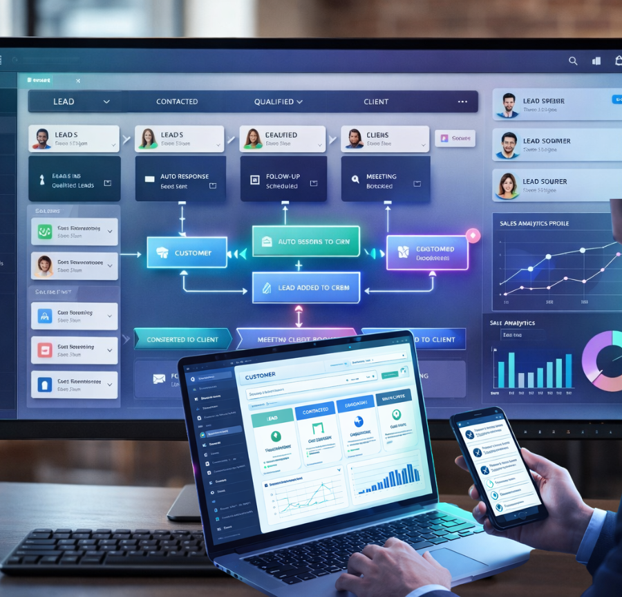 CRM Automation uses software to automatically manage customer data, sales processes, follow-ups, and marketing tasks, helping businesses improve efficiency, customer relationships, lead tracking, and overall productivity.